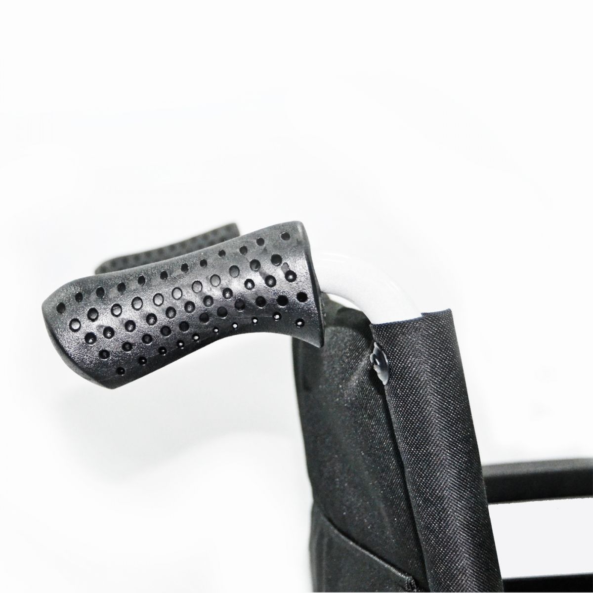 Зручні знімно-відкидні підлокітники для комфортного переміщення користувача з і в крісло. Накладки на підлокітниках скошені під кутом, що дає змогу людині безперешкодно під'їхати й комфортно розміститися за будь-якою поверхнею.